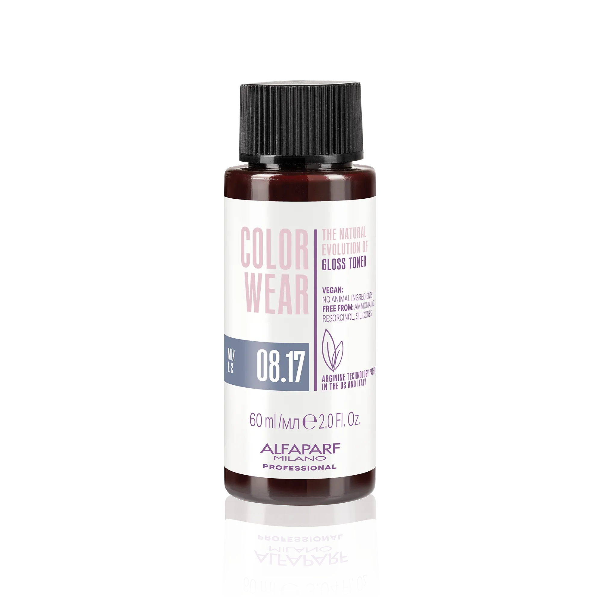 Color Wear Gloss Toner is the range of arginine-based toners with a liquid texture and free from ammonia, MEA, resorcinol and silicones.