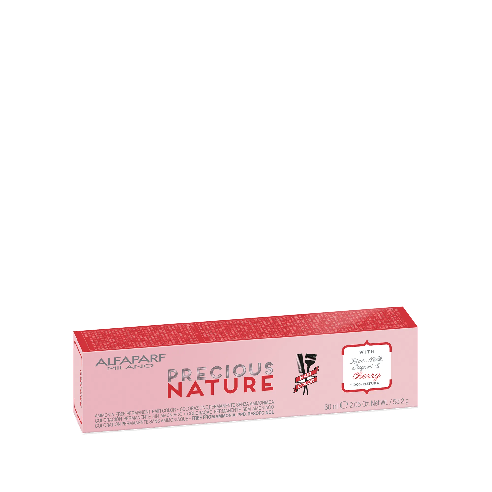 Precious Nature Hair Color is an ammonia-free permanent cosmetic color that guarantees 100% grey hair coverage. Each color family is customized with a natural ingredient with specific properties.